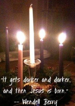 Early evening these days is nearly totally dark at our kitchen table, even with two purple candles and a pink one lit in our Advent wreath. It seems darker than usual this year. The familiar fuzzy comfort of the season is absent…I feel fierce, raw, angry and afraid. I think of my sister, whose pale Alaskan sun sets early in the afternoon this time of year; after a weak attempt at climbing partway up the sky, it gives up and drops quickly back below the horizon again.