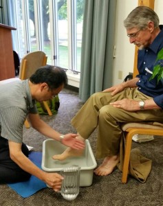 11953262_522880374536523_1365872882760670678_nCentral to this year’s conference and all Bridgefolk gatherings was the footwashing and Agape meal, using a liturgy that was developed by Rev. Prof. Mary Schertz (AMBS) and Abbot John Klassen OSB (Saint John’s Abbey), drawing on ancient liturgical forms and a current practice shared by Mennonites and Catholics. For Bridgefolk, footwashing has become a poignant ritual of celebrating our baptismal unity in Christ in this time when full Eucharistic communion is still not possible.